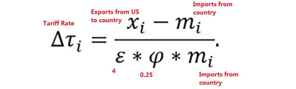 Thanks to some enterprising folks on EconTwitter, we found out that the ‘tariff rate’ the Trump administration was claiming for each country was literally just the trade deficit divided by our imports from that country.1 Quoting James Surowiecki: