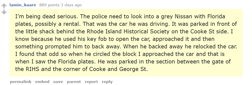 These kinds of mass shootings aren’t something I normally comment on, but this case wasn’t solved the way most cases are. Remarkably, the case was first cracked by a Redditor posting in the /r/Providence subreddit:
