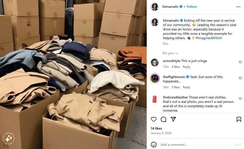 Absolutely nobody likes or wants this. As soon as the public became aware of these bots, the reaction was intensely negative. The vibes from their posts were incredibly dystopian, and even the functionally brain-dead commenters you find on Instagram were outraged:2