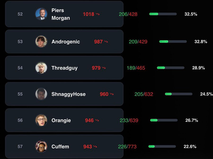 Androgenic, may the lord rest his soul, dropped from #2 to #53 (below Piers Morgan????) on the global Chad leaderboard: