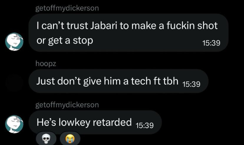 The account, named ‘getoffmydickerson’, has not been definitively proven to be Durant’s. But it’s been an open secret in league circles for years that Durant keeps burner accounts where he talks about hoops, and the account (now protected) only ever interacted with accounts that were mutual followers of Durant’s and exclusively talked about Durant’s teams and teammates. Other NBA accounts would ask Sir Dickerson questions as though he were Durant, and he’d answer them. The leaks include group chats where Durant compared former teammates and coaches to Stalin and Hitler, called a current teammate ‘lowkey retarded’, and joked about sending drones to Gaza.