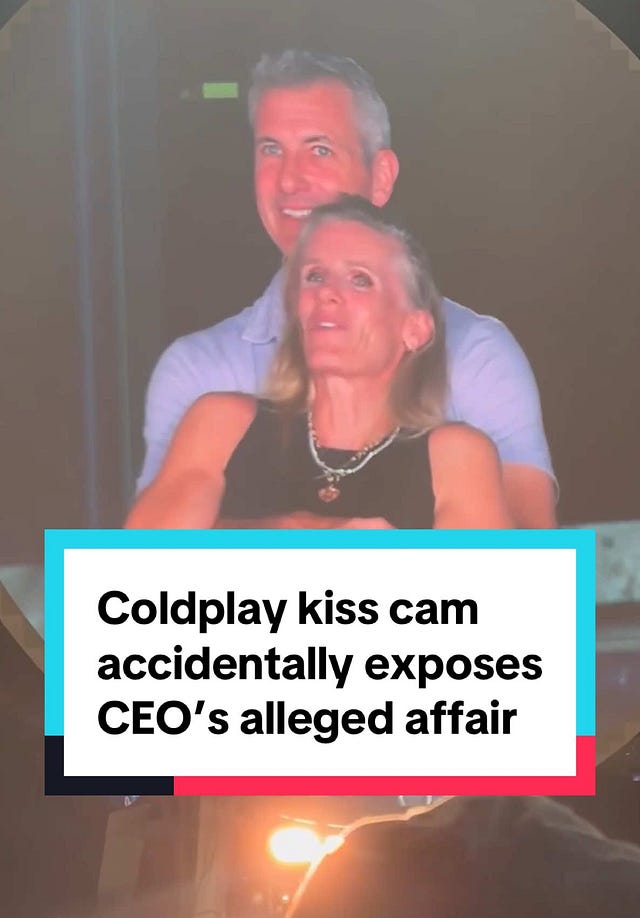The ‘kiss cam’ at a Coldplay concert in Boston caught two awkward people ducking away from the camera and Chris Martin immediately speculated “Either they’re having an affair or they’re very shy”. Reader, it will not surprise you to find out it was the first one. Chris knows game, I guess.